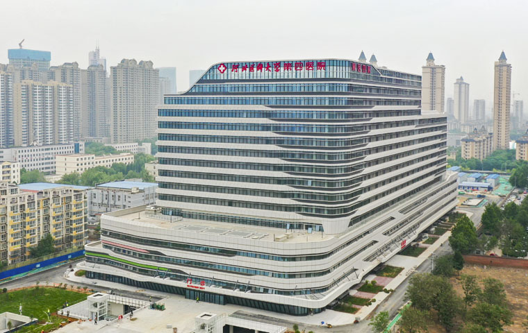 东院区医疗综合楼为省市重点民生工程。2016年初,我院购买了东院区南邻原石家庄足利驾校90.172 亩土地,2019年12月开工建设。东院区医疗综合楼设计为地下3层、地上主楼15层,裙楼5层,建筑面积16.05万㎡,为目前华北地区在建最大单体医疗建筑。大楼内部1-5层主要为门诊和医技科室,各门诊均按区设置;建有27间高端手术室和数字一体化复合手术室、1095㎡的日间放化疗中心(包括100个输液椅和输液间)、1420㎡的内镜中心、5间DSA的介入中心、1680㎡的CT和840㎡的放射影像中心;6-15层为病房,每个护理单元33-45张标准床位;负1层主要为急诊、核医学科、职工食堂和药库;急诊科面积为2960㎡;负2层为放疗机房、供应室库房、换热站、配电室、机械车库等保障系统,包括8台直线加速器和TOMO的放疗中心;负2-3层有771个停车位;合理布局了47部电梯,配置了智能箱式物流和垃圾污被服自动收集等先进物流系统。