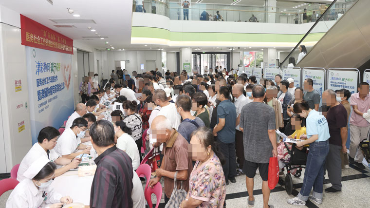 同期,大型联合义诊活动在本部院区门诊楼一楼大厅进行。天津市肿瘤医院与我院的近20位医疗专家共同组建起专业全面的权威联合团队,涵盖乳腺、甲状腺、肝胆、胃肠、胸外、泌尿、口腔、中医、妇科等领域,吸引数百名患者及家属前来问诊咨询。